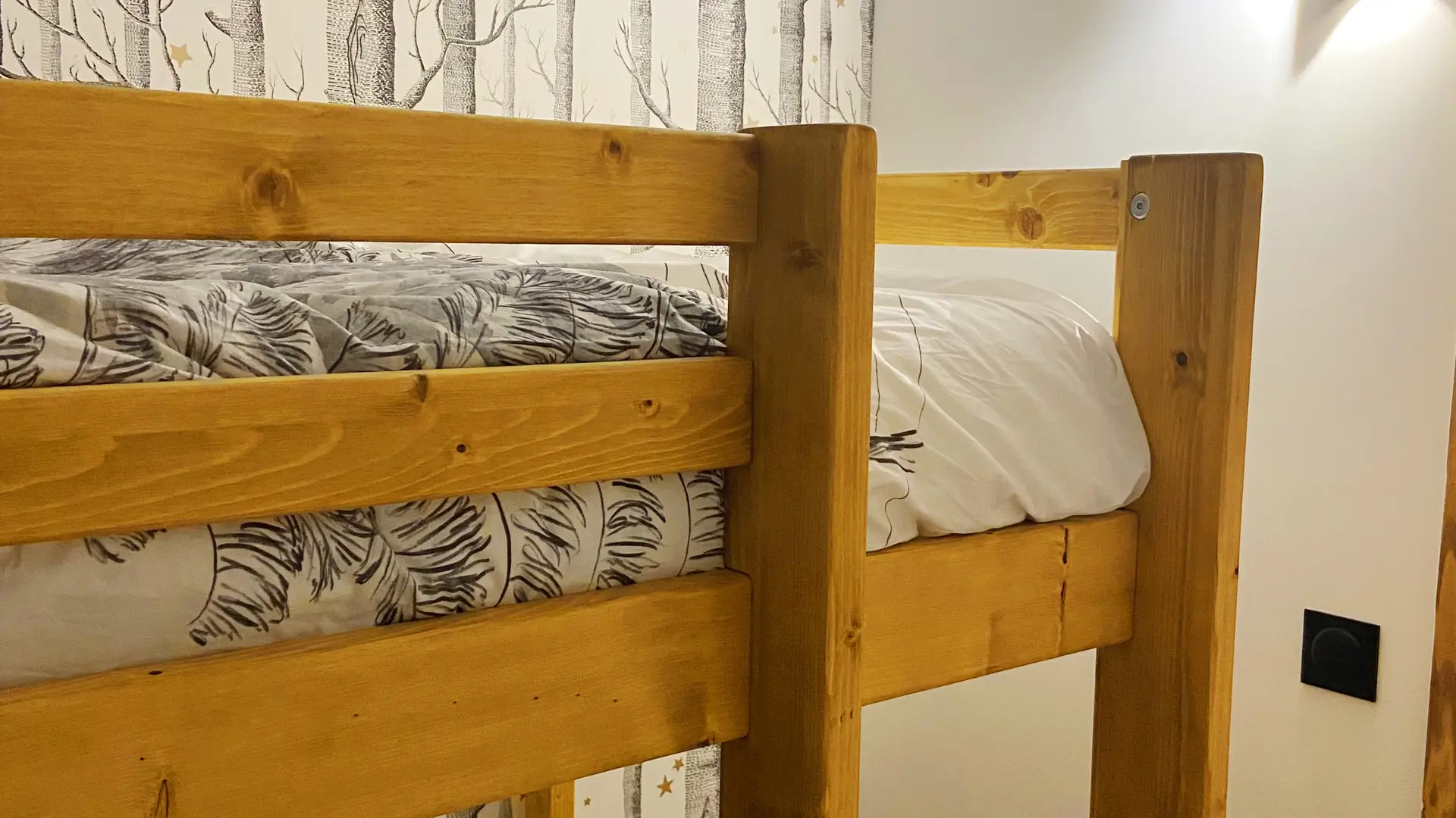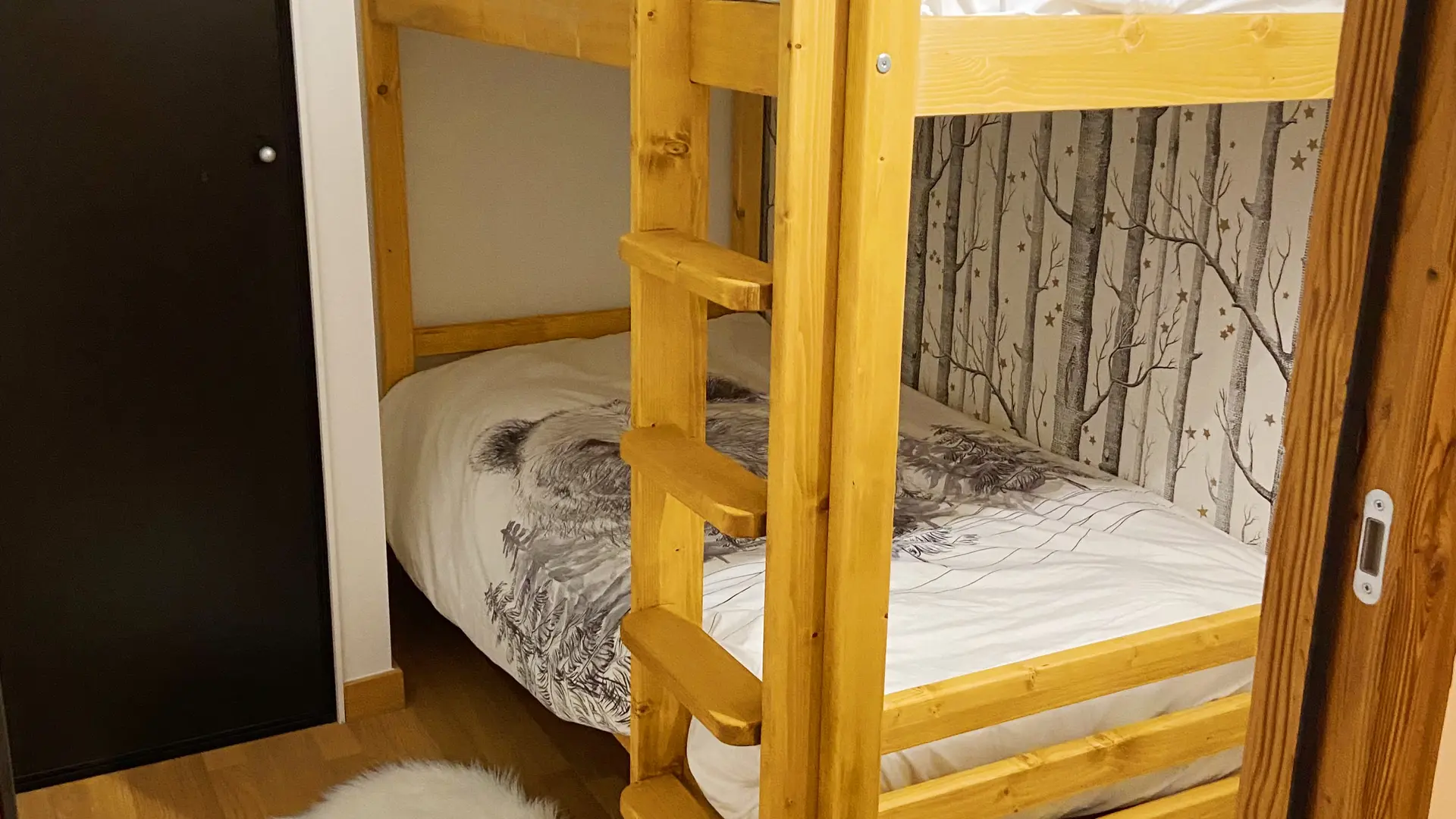 Deux chambres spacieuses et lumineuses dont une en suite avec salle de douche accèdent à une deuxième terrasse côté pistes. L'une des deux chambres possède deux lits simples de 90cm pouvant formé un lit Super King Size, l'autre possède un lit de 160cm.