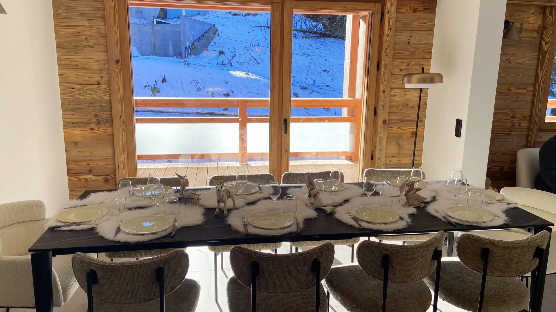 La pièce de vie et ses baies vitrées est composée d'une belle cuisine moderne avec îlot central ouverte sur le salon/séjour donnant sur un balcon d'une superficie de 14m2 exposé Sud proposant une vue magnifique sur le village et les monts environnants.