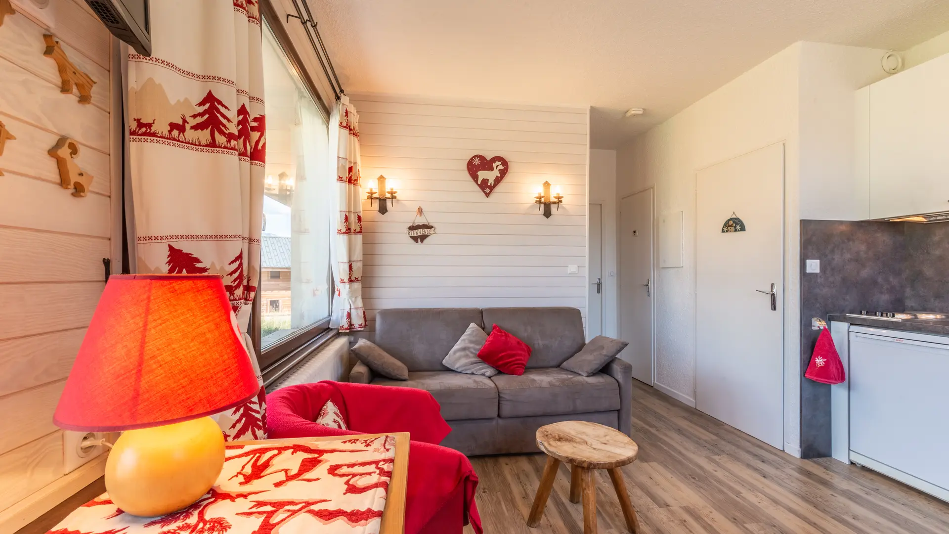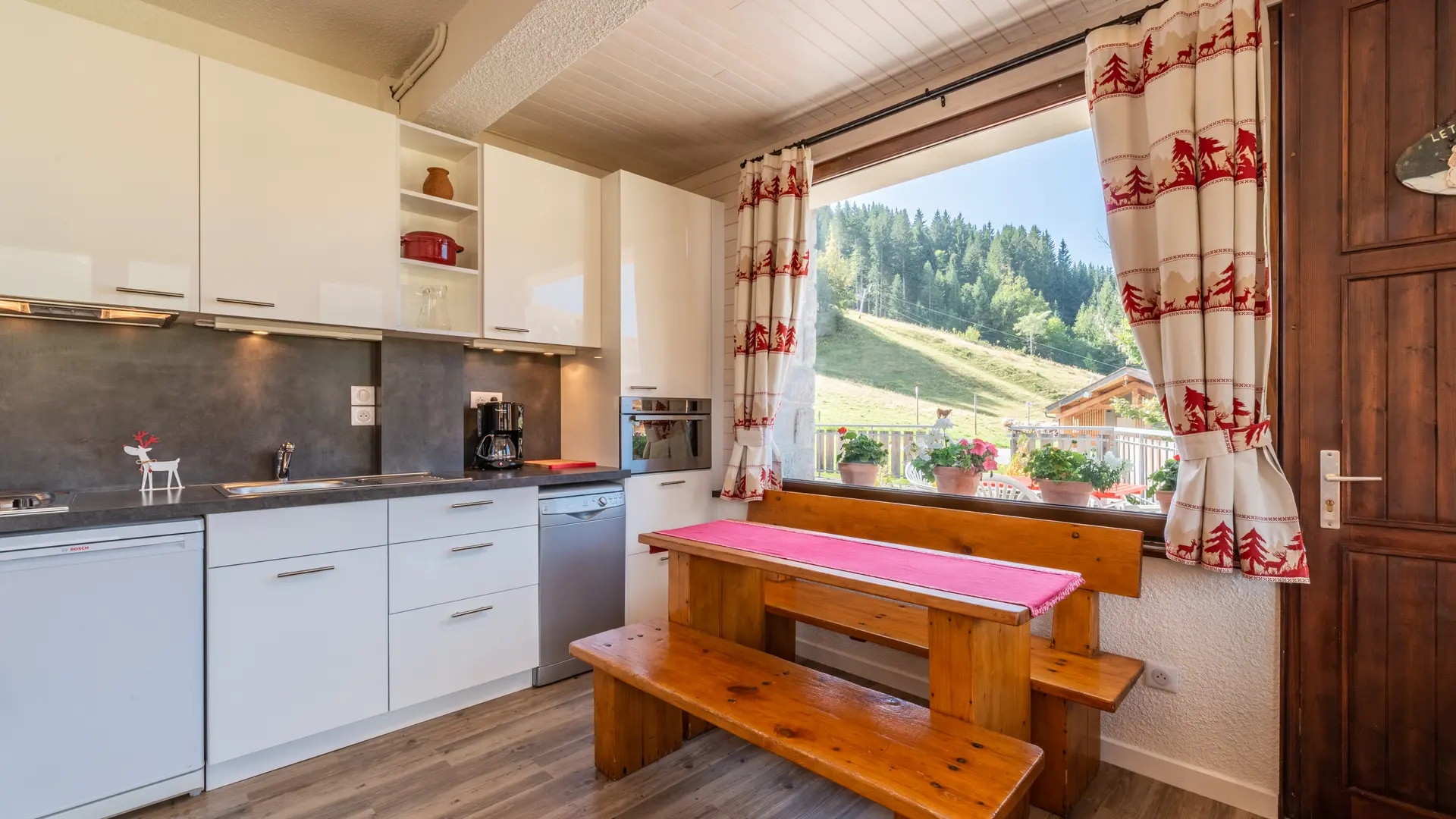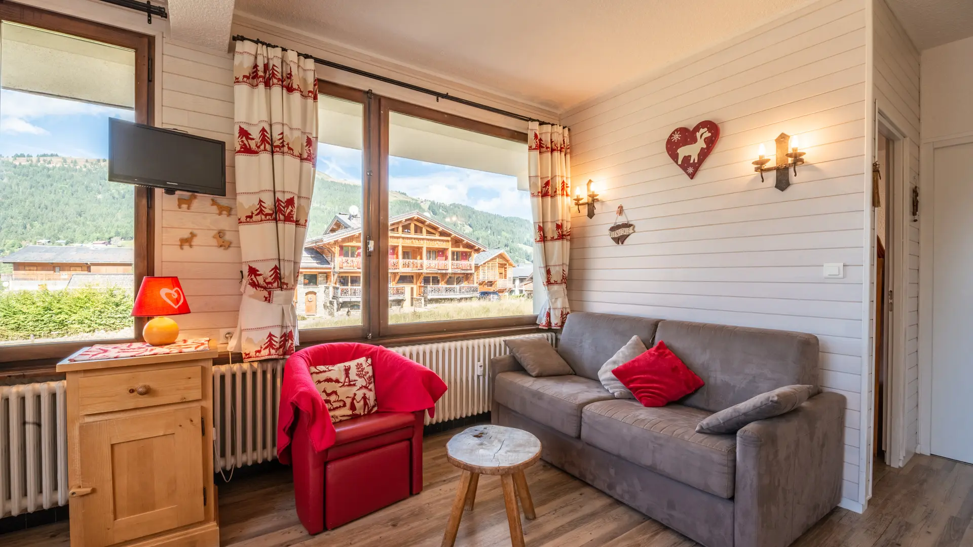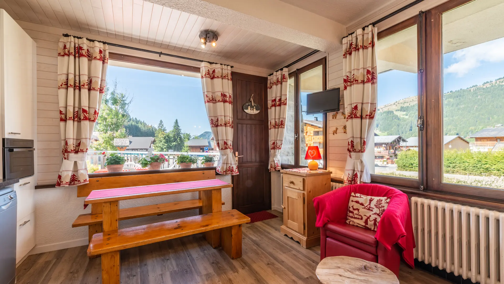 Départ skis aux pieds. Au pied des pistes de la Turche l'hiver, des alpages et de la forêt l'été, exposition sud-ouest, vue sur les montagnes, terrasse au sud. Appartement très lumineux -Décoration montagne.