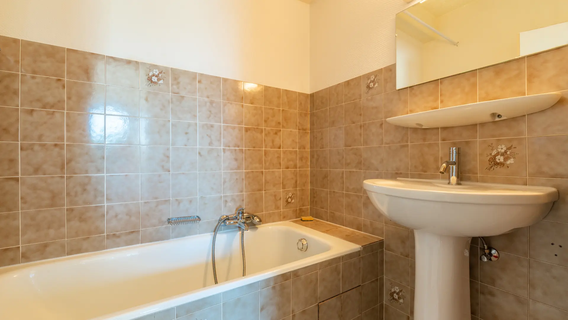 Sejour avec canapé lit très confortable (système Rapido), chambre avec 2 lits superposés, salle de bain avec baignoire douchette, WC séparés, nombreux placards.