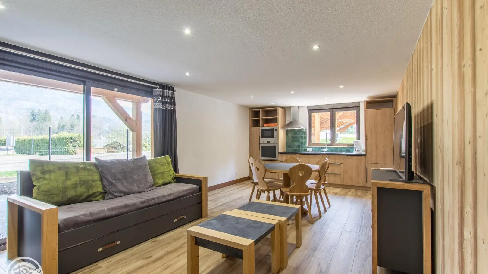 Possibilité de louer les draps et le linge de toilette. Casier à skis privatif. Vaste parking sur place avec une place couverte par appartement. Espace bien-être commun avec SPA 8 places et Sauna : privatisation d'un créneau horaire à demander au propriétaire (accès gratuit). Télécabine de Morillon à 800m : accès au domaine skiable du Grand Massif (stations reliées de Morillon, Samoëns, Flaine, Les Carroz et Sixt-Fer-A-Cheval).