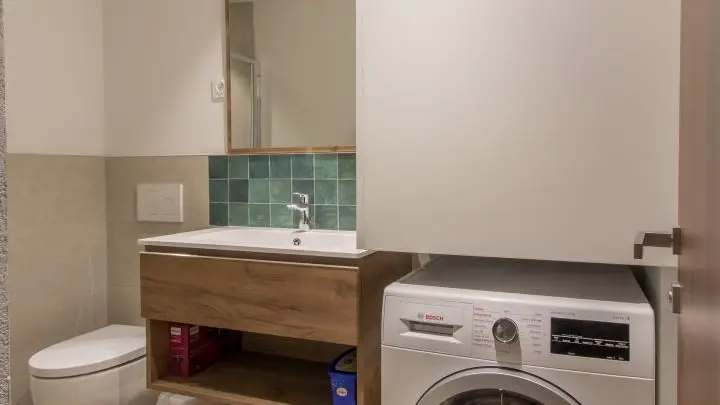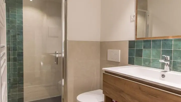 Chambre borgne (1 lits 140x190cm), salle d'eau (douche, wc, lave-linge). Internet wifi. Plancher chauffant hydraulique (chaleur douce). Climatisation réversible (dans le séjour).