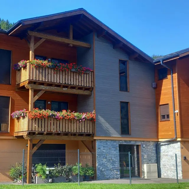Location de skis et vélos en face du gîte. Commerces de proximité à 400m, supérette à 900m. La résidence est située en bordure de la route départementale, mais la chambre est située sur l'arrière du bâtiment (sur le côté opposé à la route).