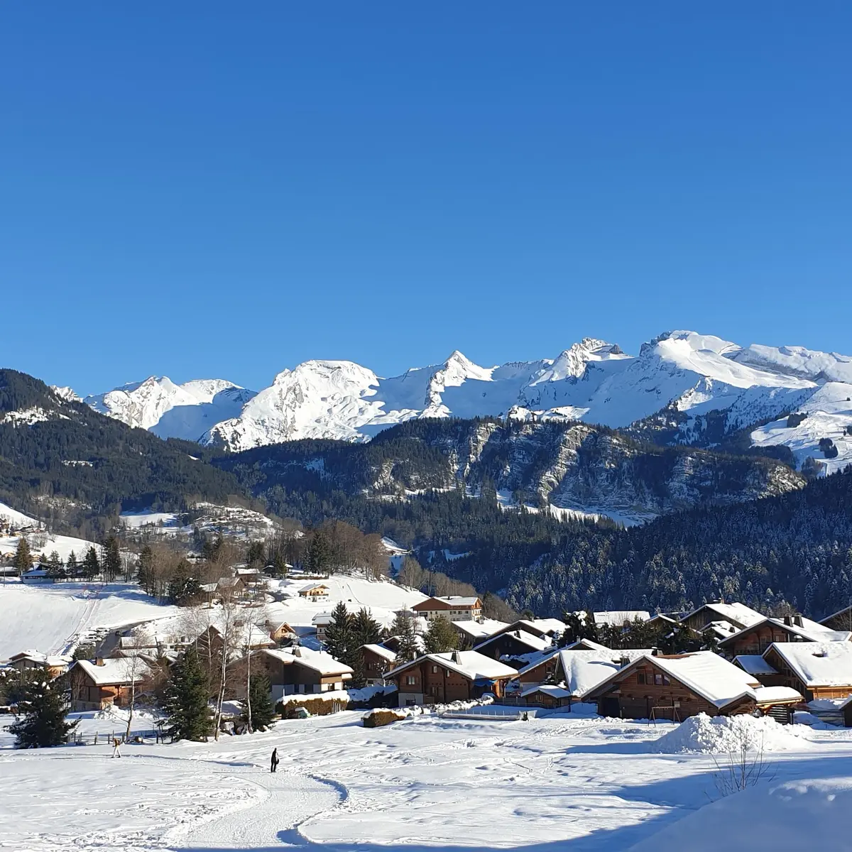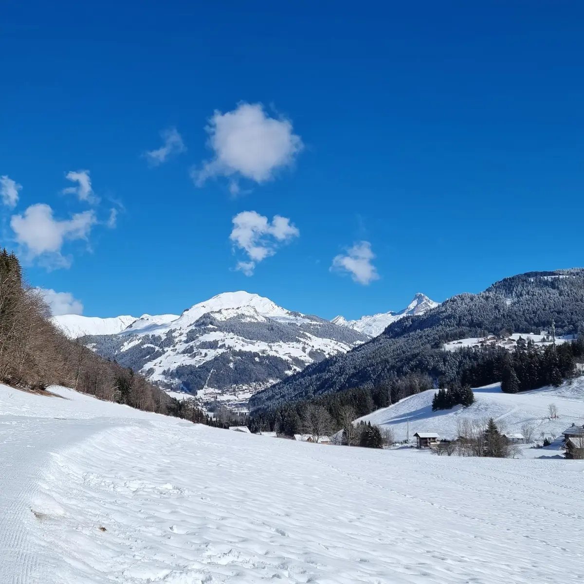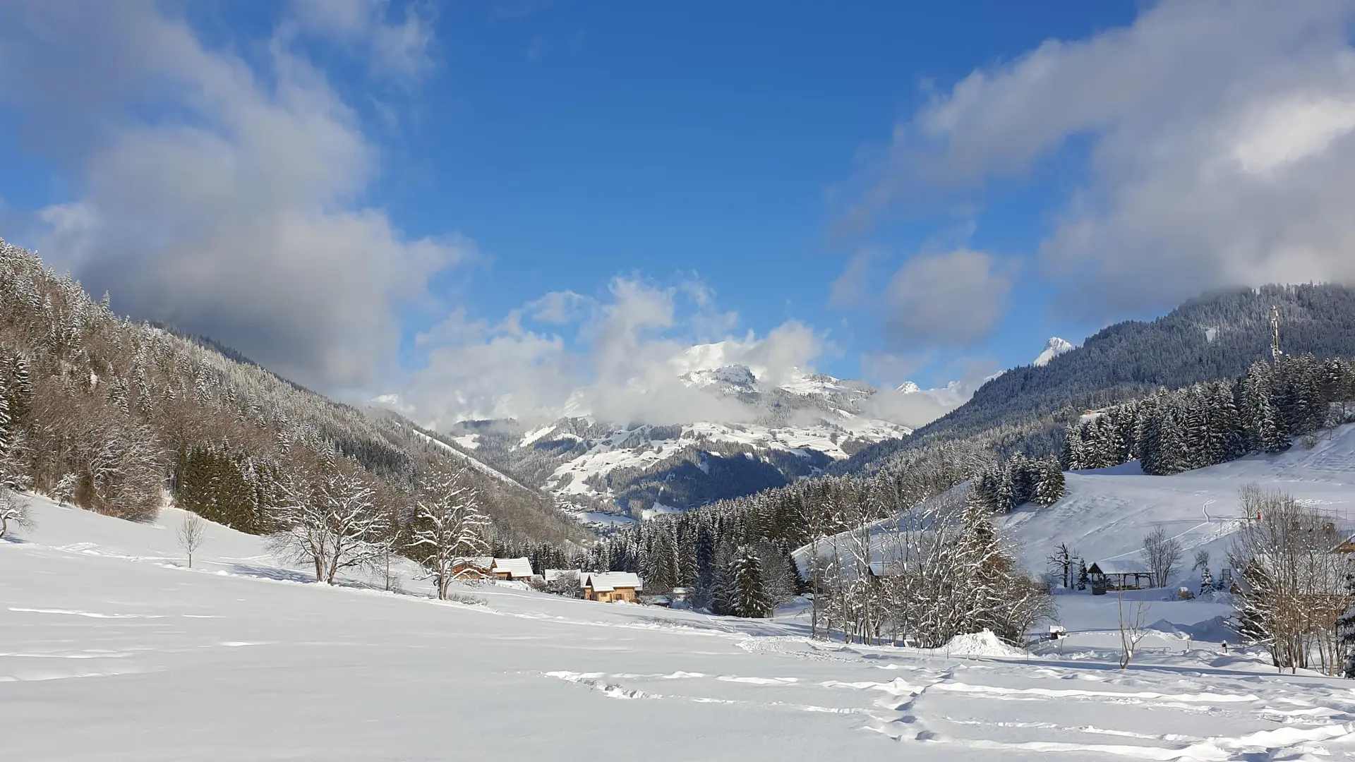 Une balade très simple et ensoleillée sur le hameau de Forgeassoud offrant une vue sur le village du Grand-Bornand, la chaîne des Aravis et le mont Lachat de Châtillon. Cet itinéraire est damé (raquettes non nécessaires).