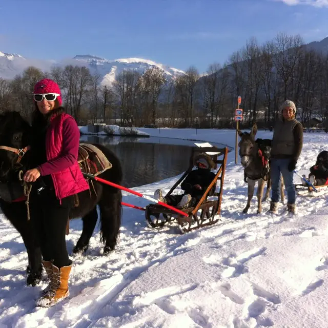 L'hiver, le poney luge permet la balade soit sur le poney, soit derrière, sur la luge.