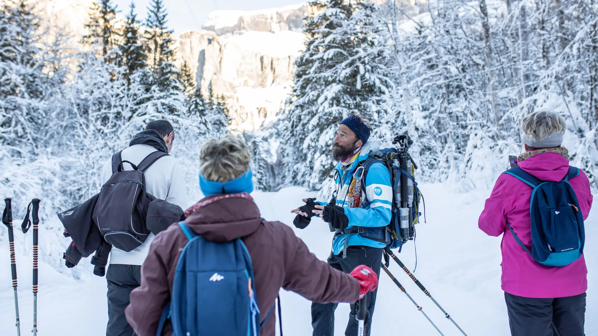 Transport en minibus, raquette, battons fournis et sac à dos. Plus le matériel d’observations et la possibilité de faire des photos.