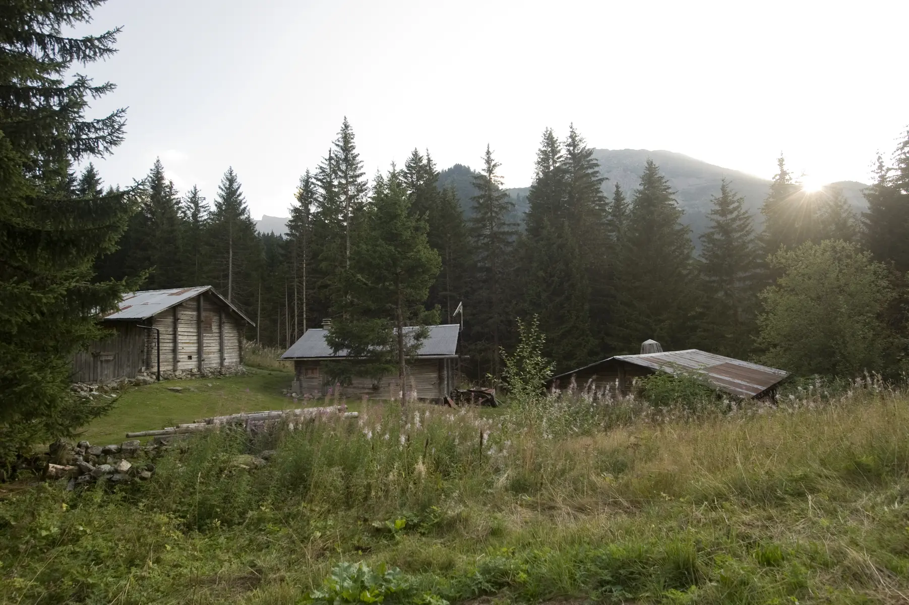 Au Signal, côté amont, prenez le premier chemin à gauche (n°107) passant à proximité d’un chalet en bois, pour descendre à la Bûche Croisée (numéros