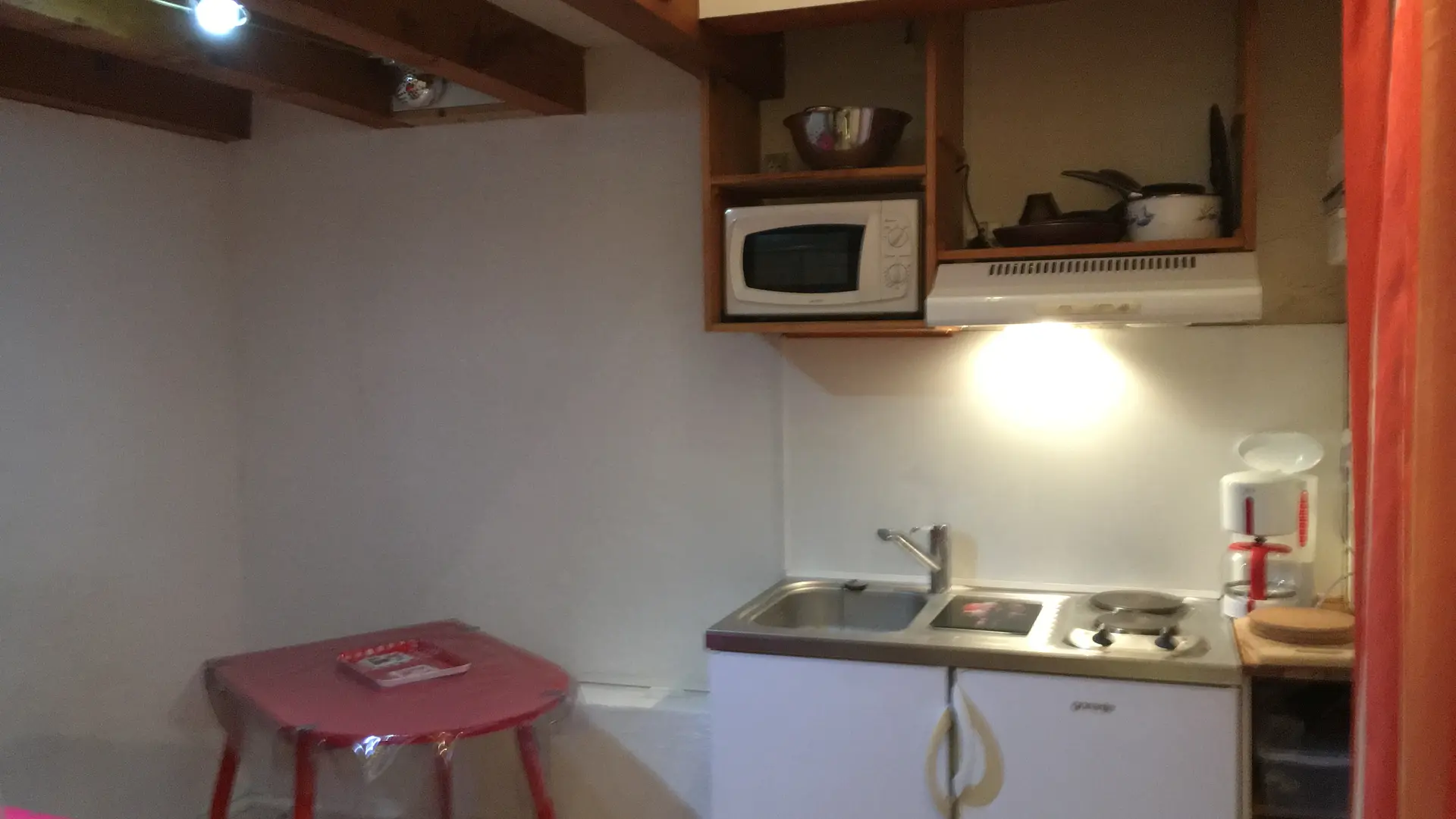 Studio de 13m² situé dans une petite copropriété, lieu ensoleillé. Ambiance refuge confortable, entrée indépendante. Le couchage est dans la mezzanine, studio bien placé : 5 min à pied de la gare sncf et arrêt de bus, 10 min en voiture entrée autoroute, 1h de l'aéroport Genève. commerce à min en voiture. Propriétaire disponible, présent dans l'appartement voisin. Convient à 2 personnes maximum.