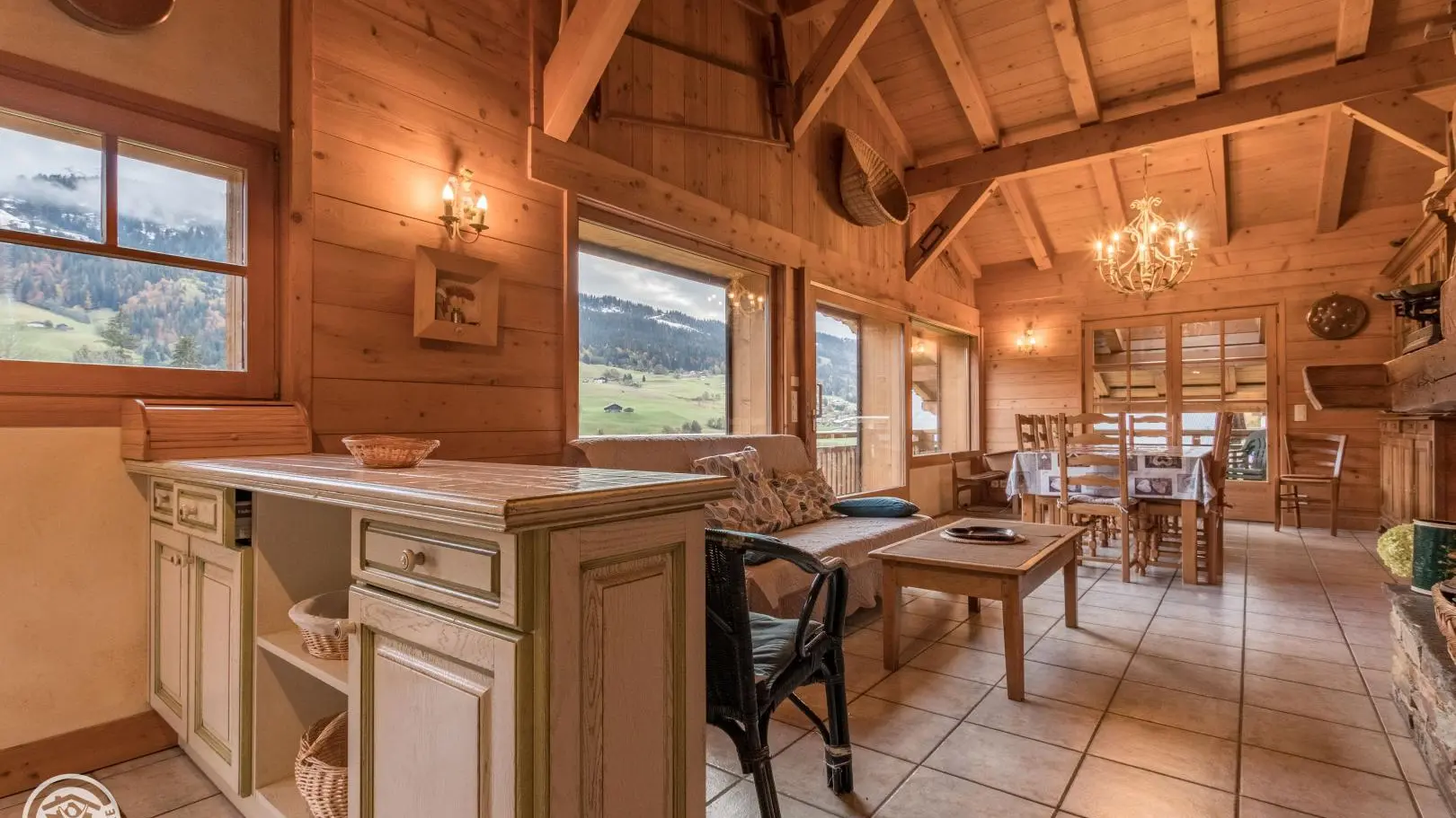 Face au domaine skiable et dans un cadre montagnard, très beau chalet aménagé dans la tradition du pays comprenant 2 gîtes d'accès indépendant et plain pied et 1 autre logement. Gîte au 2°niveau de 95 m2. Séjour panoramique avec coin repas et coin salon/cuisine intégrée, chambre 1( 1lit 140, salle de bain privative), chambre 2 (2 lits 90x190cm jumelables), chambre 3 (1 lit de 140x190cm , coin lavabo), mezzanine basse (2 lits 90x190cm jumelables), salle de bain/wc, salle d'eau, wc indépendant. Chauffage central. Grand balcon-terrasse (couverte) avec mobilier de jardin. Buanderie (lave-linge) et terrain communs. Garage (2 voitures). Domaine skiable Espace Diamant (liaison avec Notre-Dame de Bellecombe, Flumet, les Saisies). Navette gratuite en hiver à 250m. Centre de Megève à 4 Km (piscine, patinoire, luge d'été, parapente), plan d'eau de Flumet à 4km. Sentier du Baroque. Possibilité de location de draps et linge de toilette . 1 seul animal est accepté dans le gîte. Lit bébé et chaise haute sur demande.