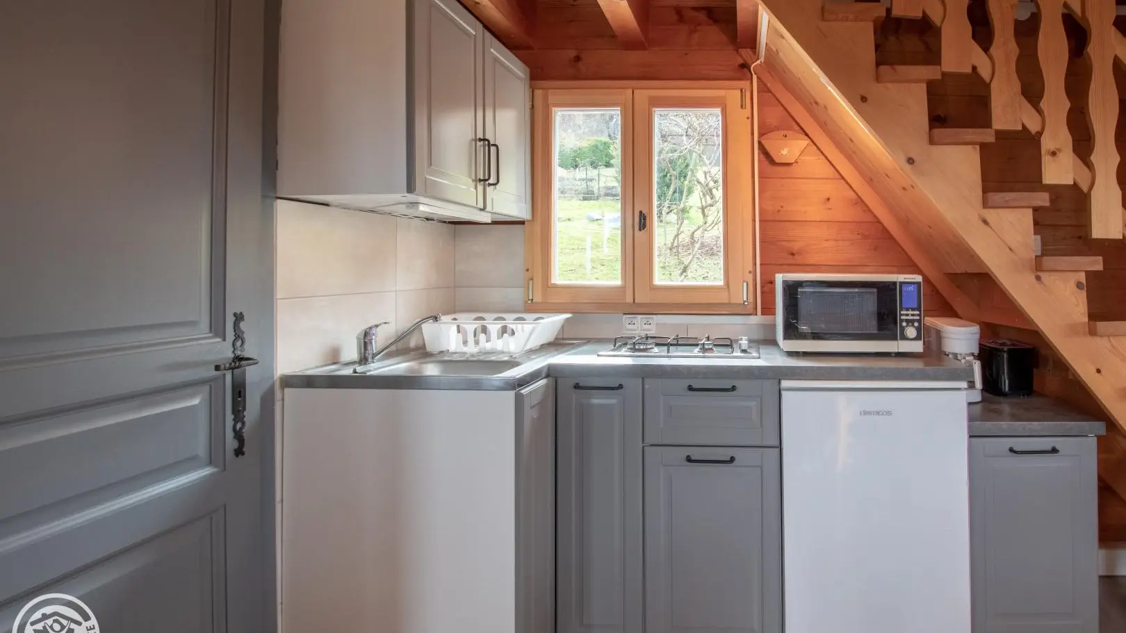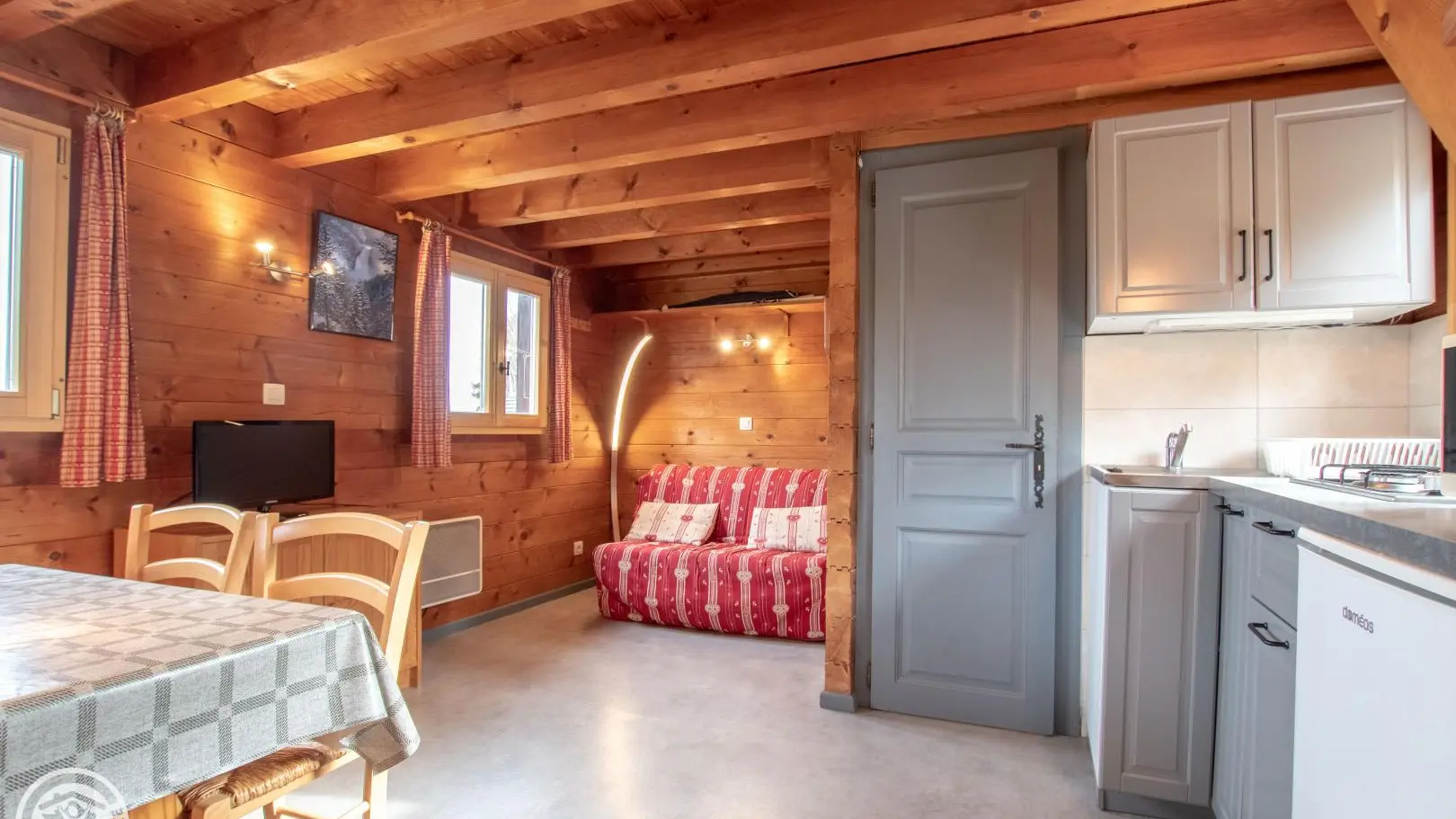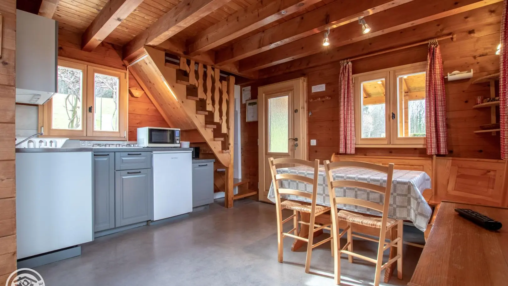 Sur la rive Sud du lac Léman, face à la Suisse, à 3mn d'Evian et 15mn de la première station, ensemble de 5 chalets indépendants (dont celui des propr.) aménagés sur un grand terrain. Gîte de 30 m2 + 10 m2 mansardés. Rdc : cuisine (m.ondes)/séjour (BZ ...