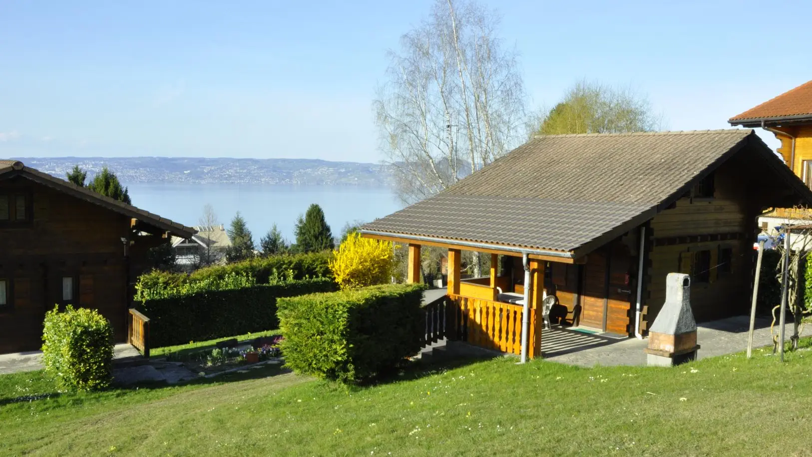 Sur la rive Sud du lac Léman, face à la Suisse, à 3mn d' Evian et 15mn de la première station, ensemble de 5 chalets indépendants (dont celui des propriétaires) aménagés sur un grand terrain. Gîte de 30 m2 + 10 m2 mansardés. Rez de jardin (accès par quelques marches) : cuisine/ séjour. Salle d'eau/WC. A l'étage : chambre non fermée et mansardée (1 lit 140, 1 lit 90). Chauffage électrique, balcon-terrasse, terrain, barbecue. Terrasse ouest couverte. Lave-linge commun dans buanderie. Possibilité de location de draps. Lac Léman, ville d'Evian Les Bains et golf à 3 km. Thermes à 3 km (remise en forme, cures). Domaines skiables de Bernex et Thollon-les-Mémises à 12 km. Tennis, équitation à 2 km. Cité de l'Eau d'Amphion à 8 km. Rives suisses et françaises à découvrir. Frontière suisse à proximité. Face à Lausanne (25mn par bateau), à 20 km de Montreux et 40 km de Genève. Réserve naturelle du delta de la Dranse à 10 km. Accès internet aléatoire.