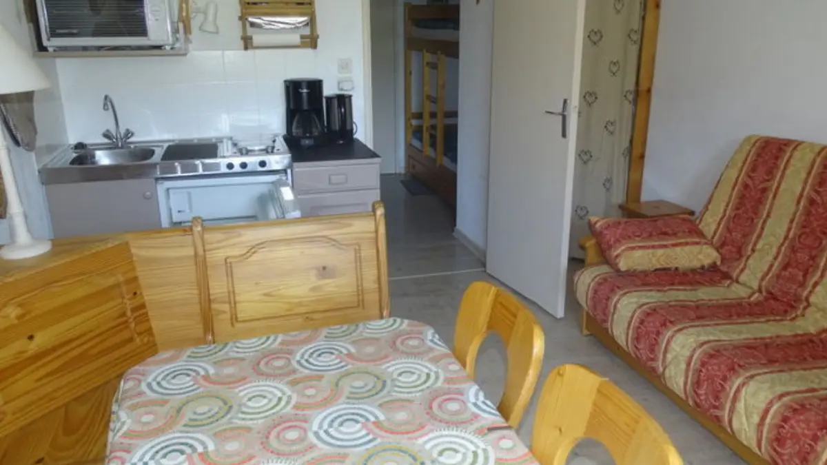Studio 4 personnes 20 m². 2er étage (ascenseur). Balcon avec mobilier. Exposition sud-est.