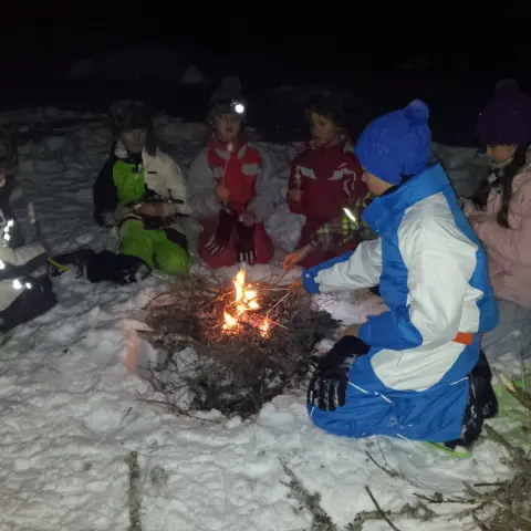 Au programme : feu dans la neige avec chamallows grillés, reconnaissance des empreintes d'animaux et construction d'igloo !