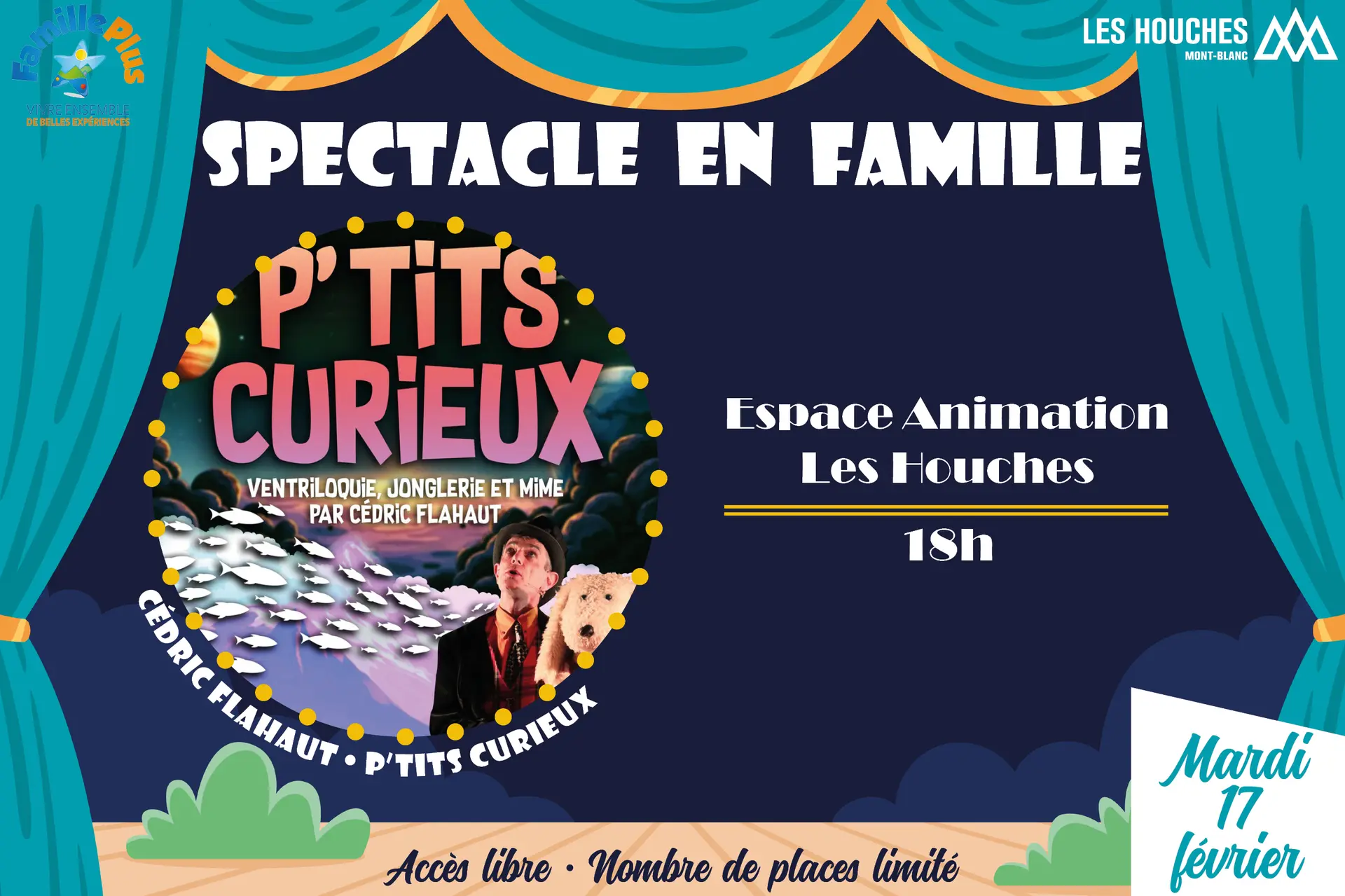 « P’tits curieux » par Cédric Flahaut - Ventriloquie, jonglerie et mime - Spectacle tout public - Durée : 50 minutes.