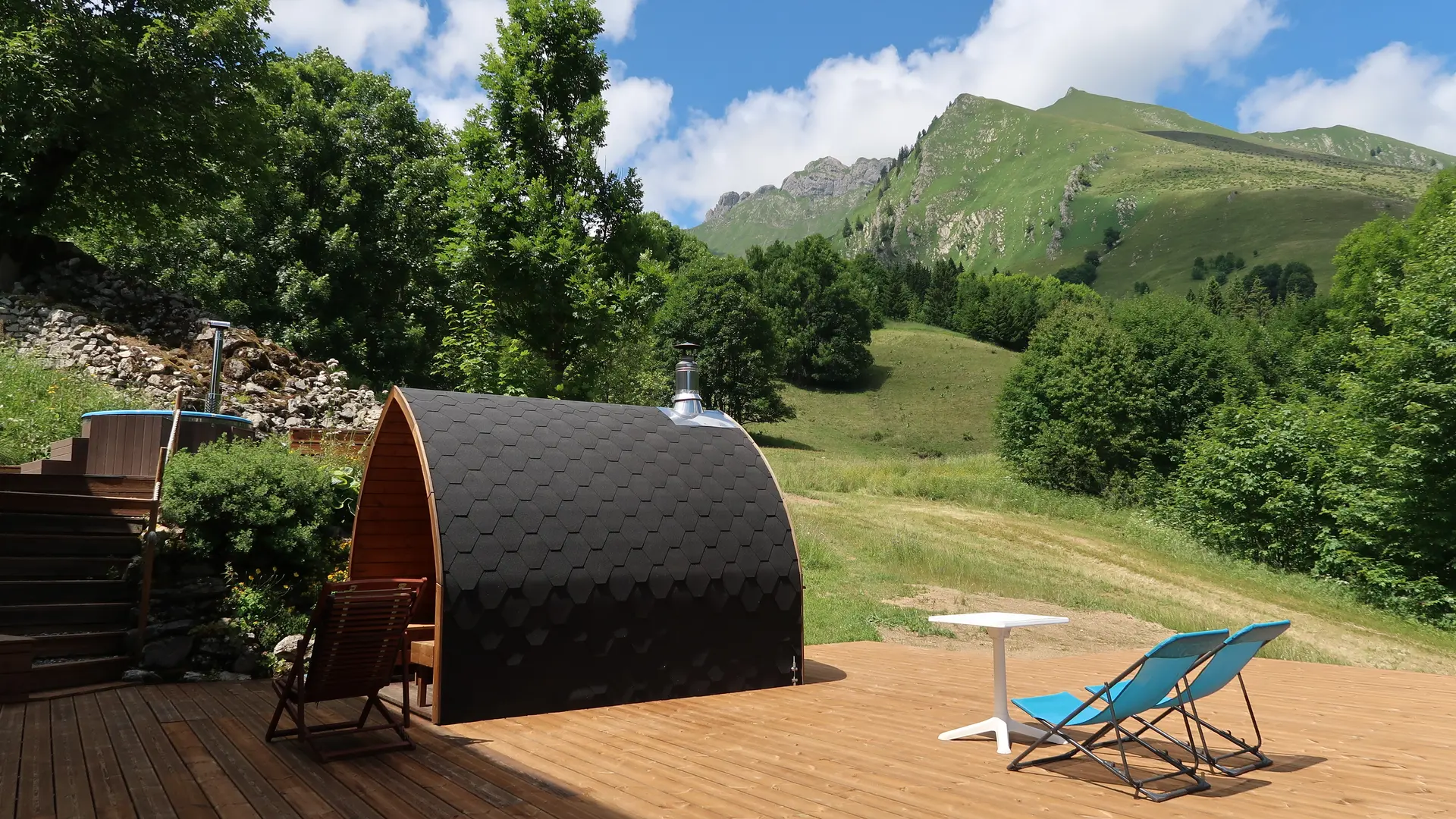 Le Chalet d'alpage Beauregard (12 personnes) est niché au cœur de la vallée sauvage et paisible de Bonnavaz. Il offre un confort hôtelier hors réseaux et dispose d'un saune et d'un jacuzzi extérieurs ouverts toute l'année.