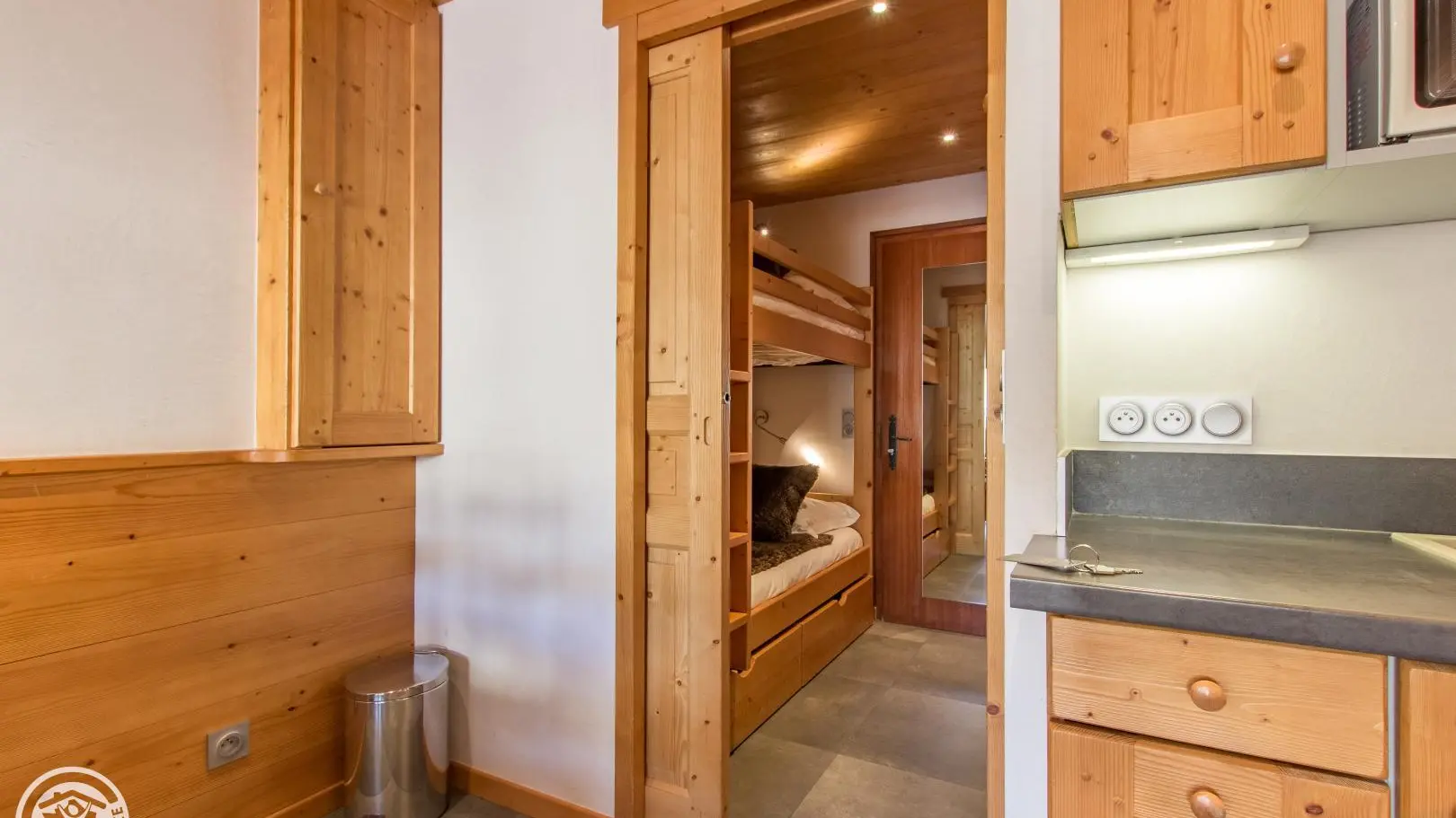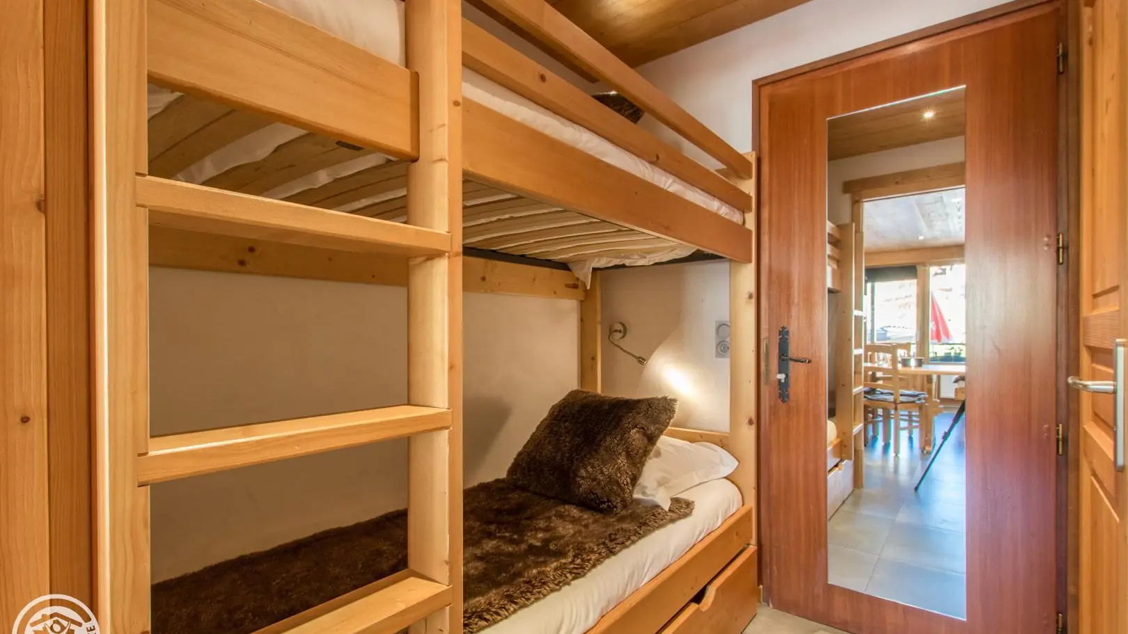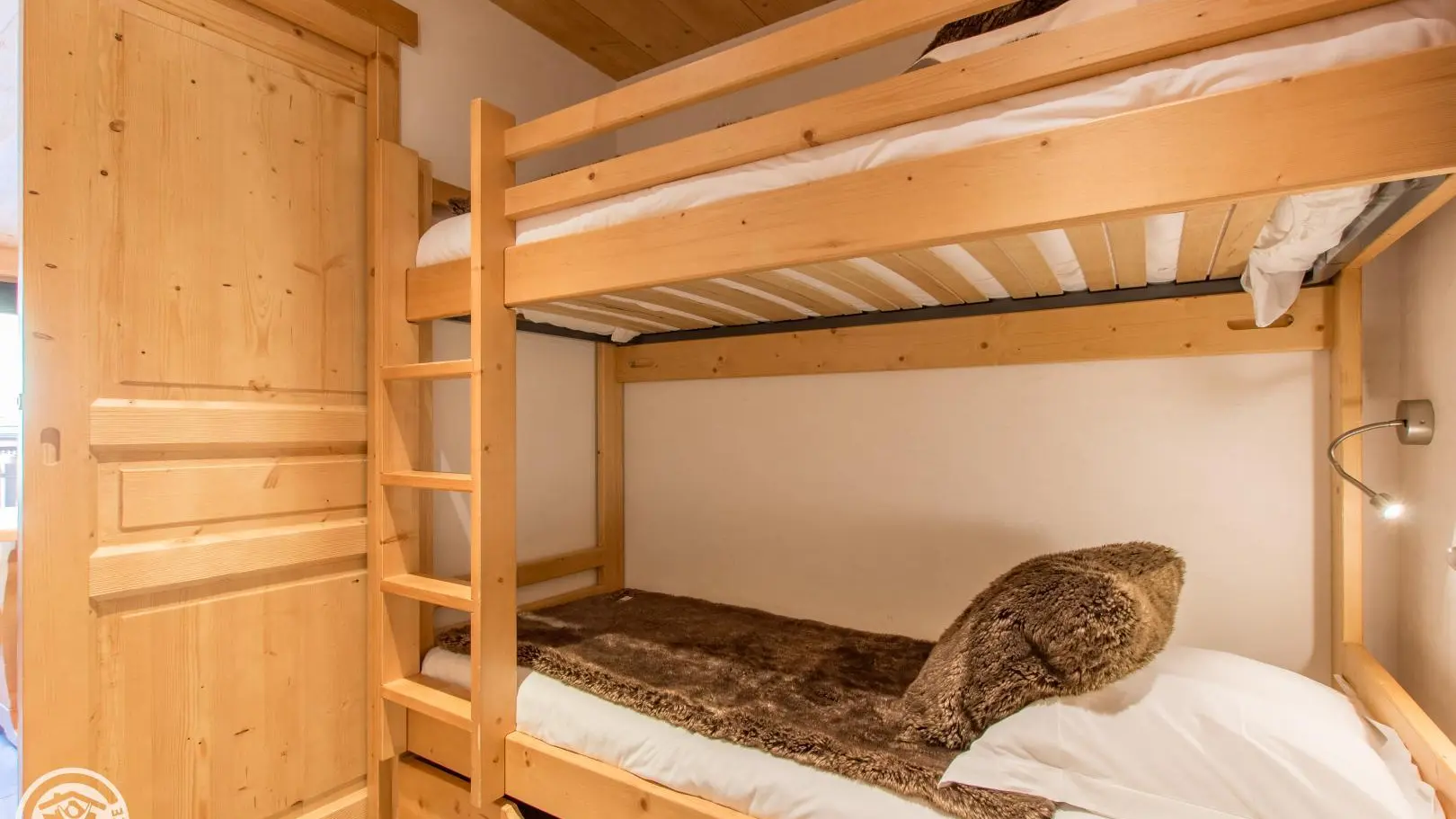 Coin montagne avec 2 lits superposés 80x190cm situés dans le hall d'entrée.