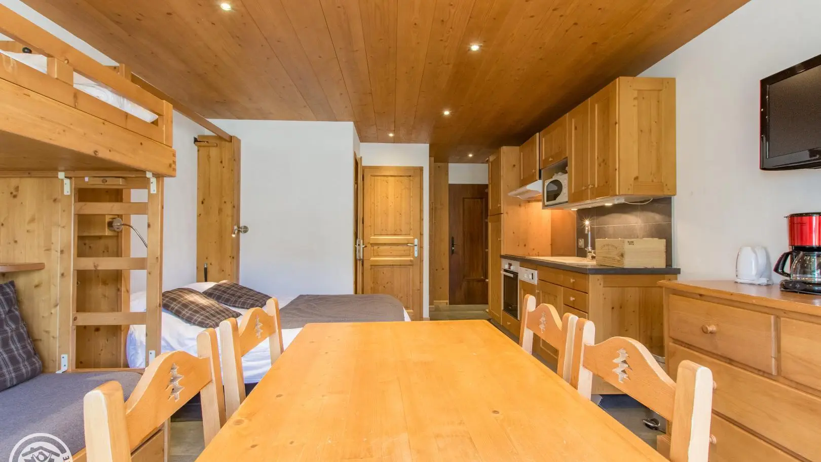 Studio de 24m² aménagé au 3ème étage d'une résidence avec ascenseur situé au coeur du centre du beau village du Grand-Bornand. Capacité maximum jusqu'à 4 personnes (sans supplément).
