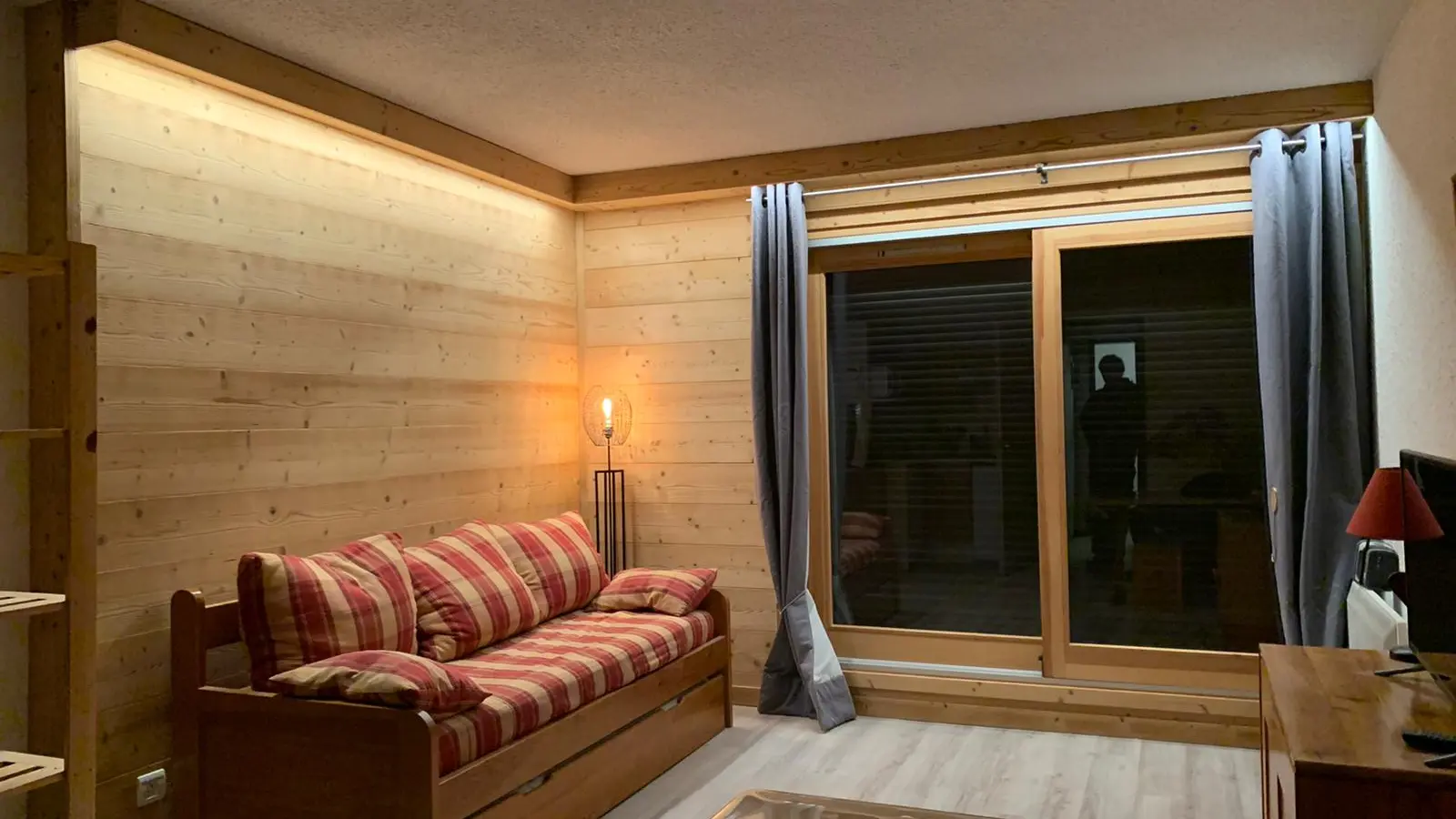 Studio de 26 m2 classé 2 étoiles et labellisé 2 carraz pour 4 personnes situé au Pré du Bois. Navette skibus gratuite toutes les 20 minutes en hiver.