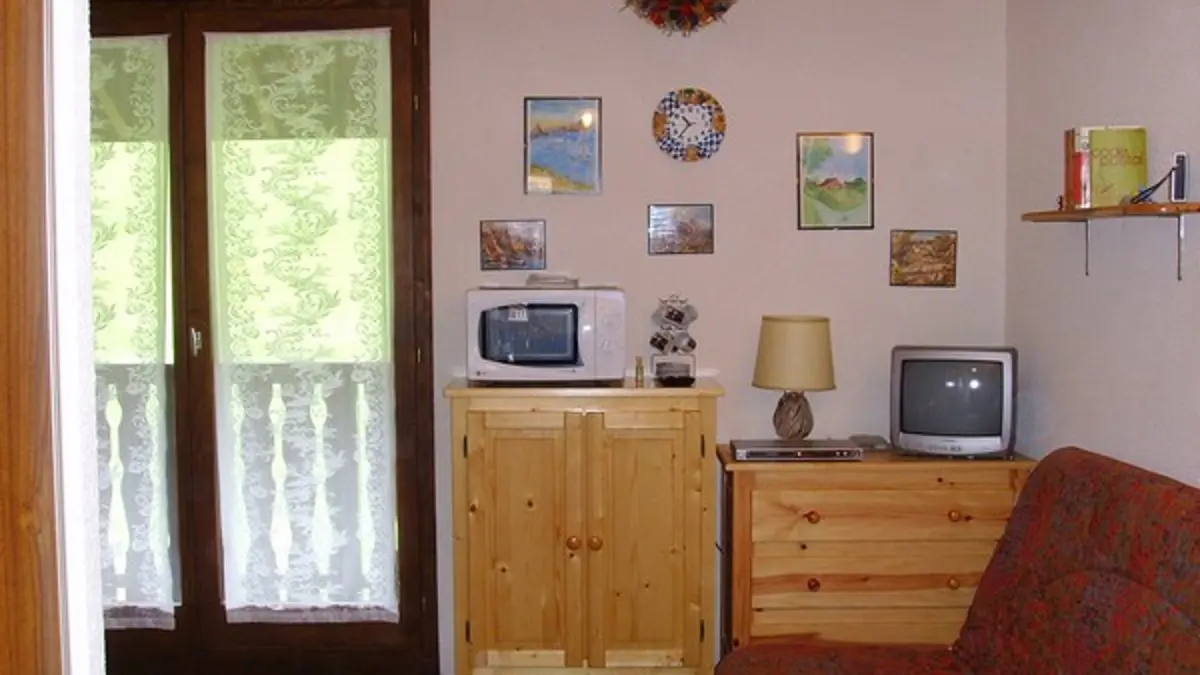 Studio meublé en résidence, avec parking privatif, local à vélos et casier à skis attribué.