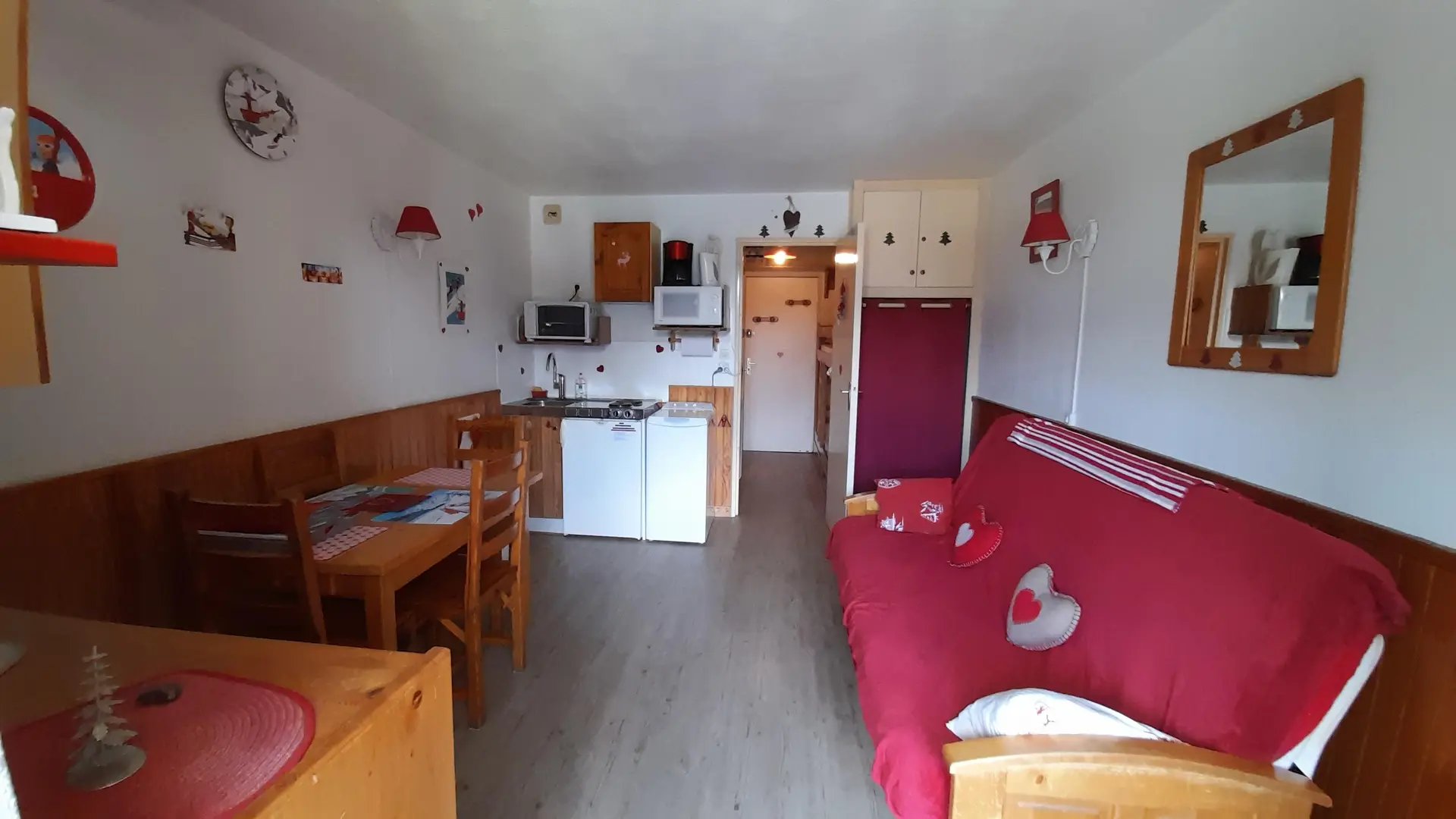 Studio situé au cœur du village à 2 pas des commerces, à 300m du Grand Massif Express (à 100m d'un arrêt ski-bus) et à moins de 2 km de la base de loisirs (piscine -été -, lac,tennis,jeux...)