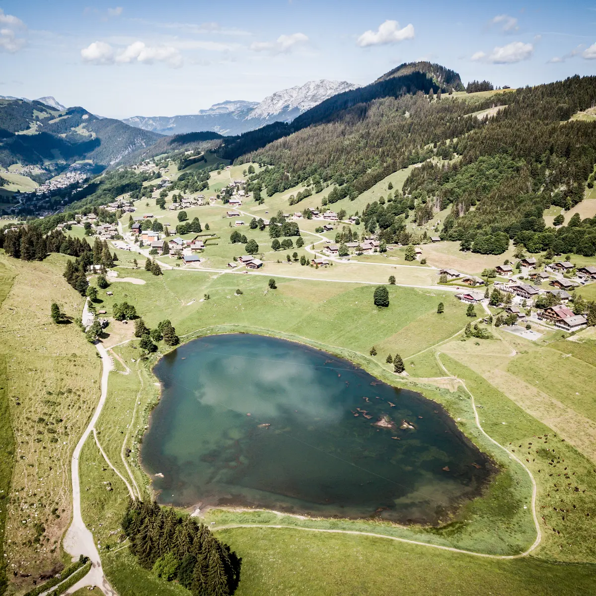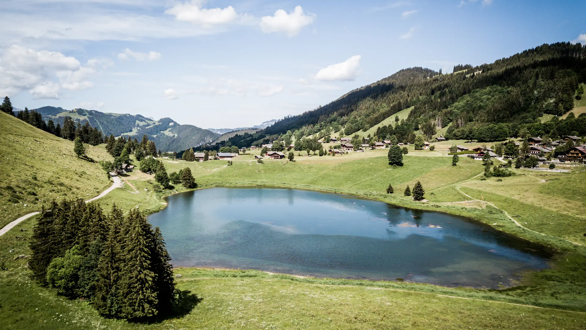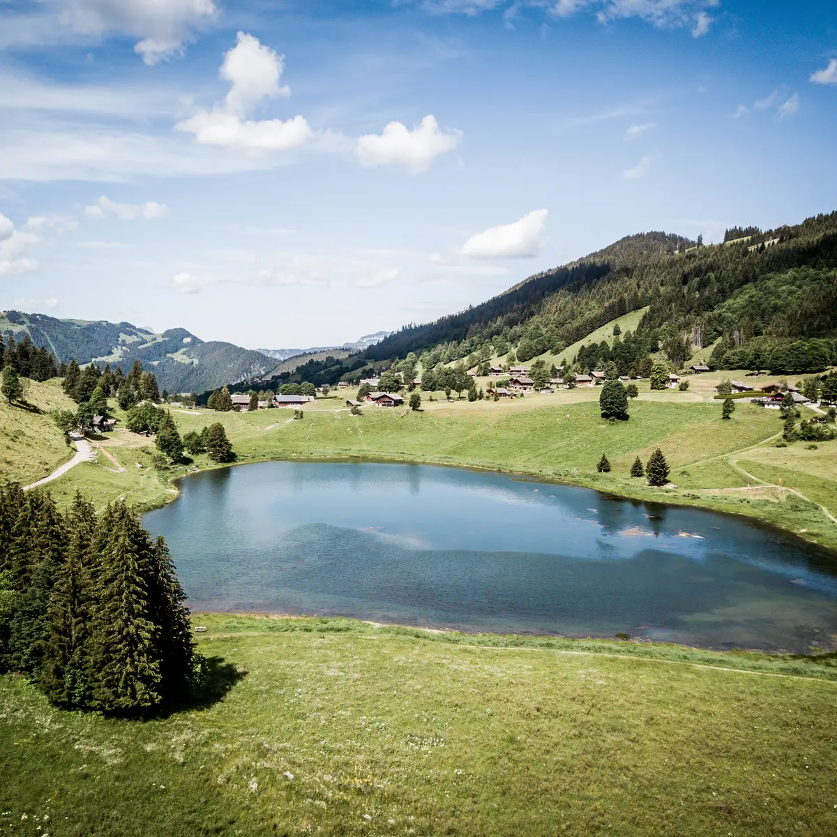 Balade très facile, idéale avec des enfants, autour du petit lac naturel des Confins, situé en plein alpage au pied de la chaîne des Aravis.