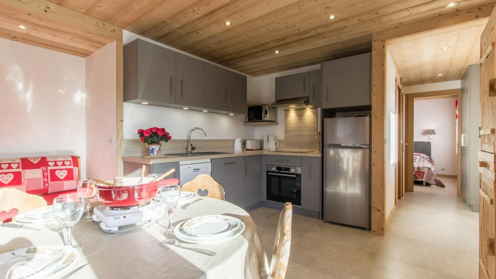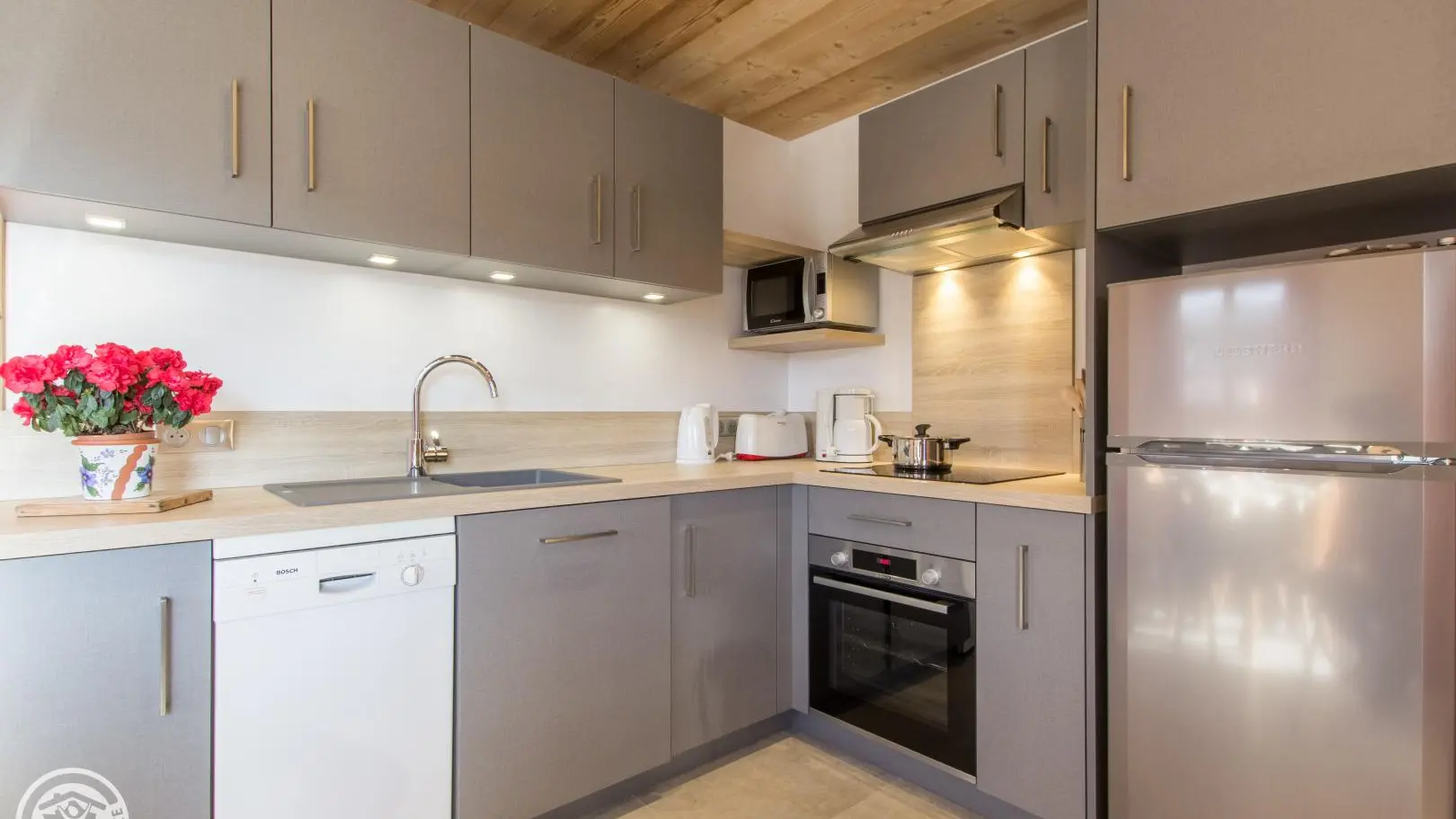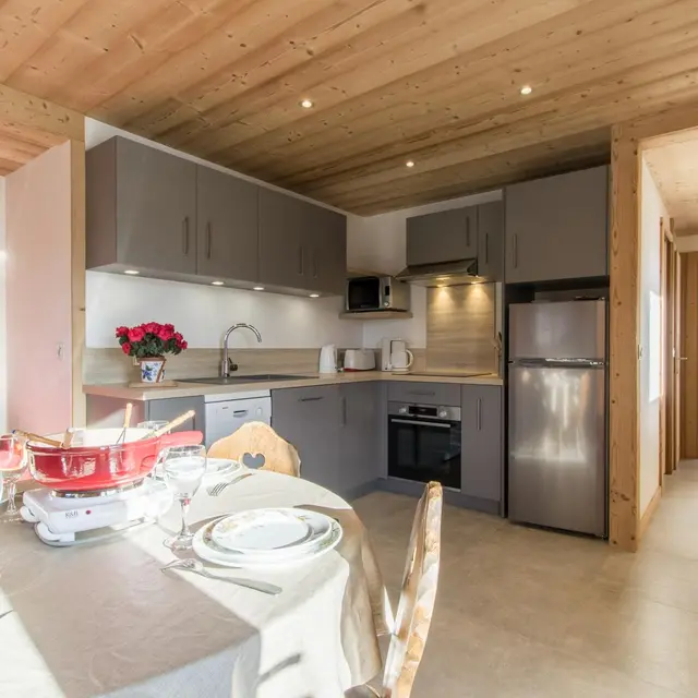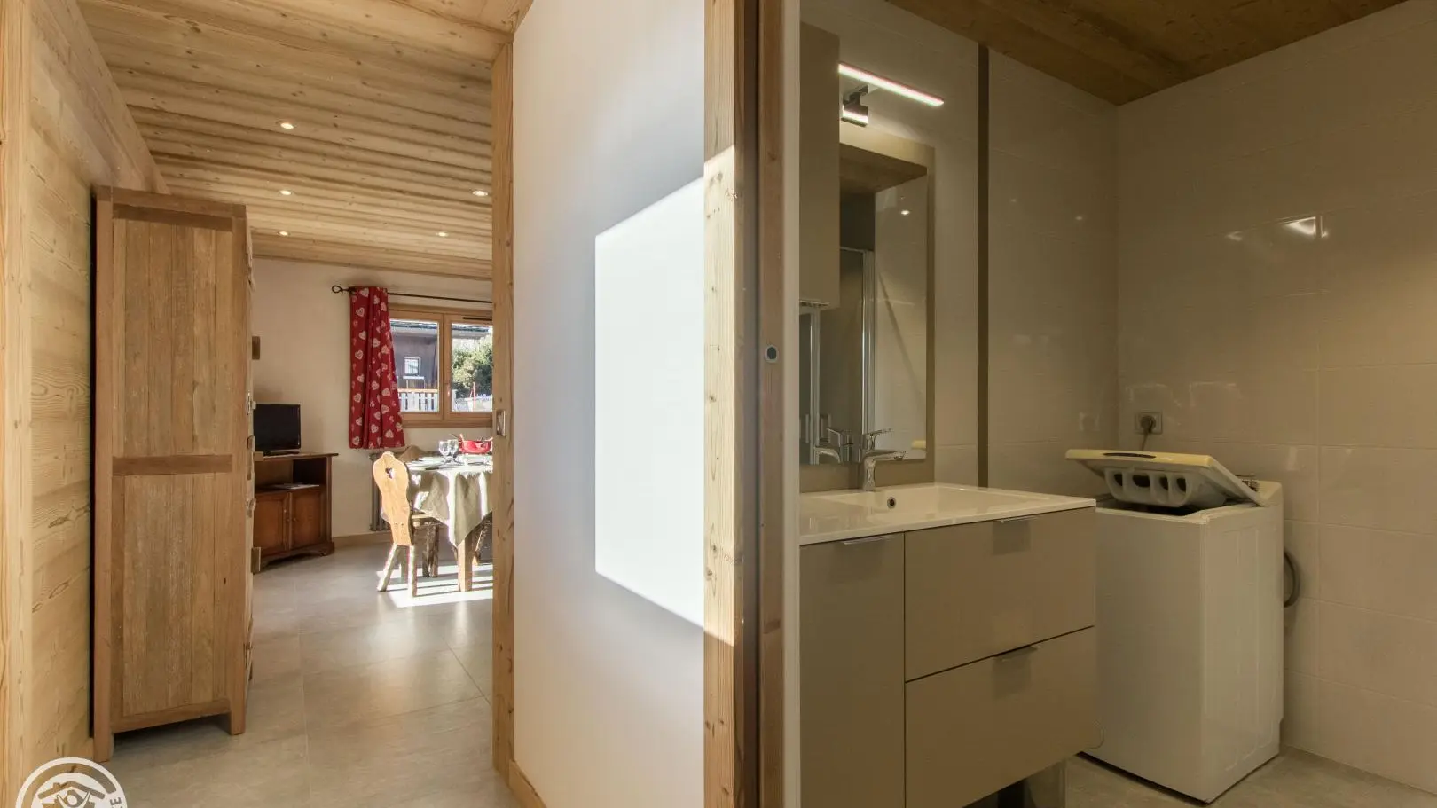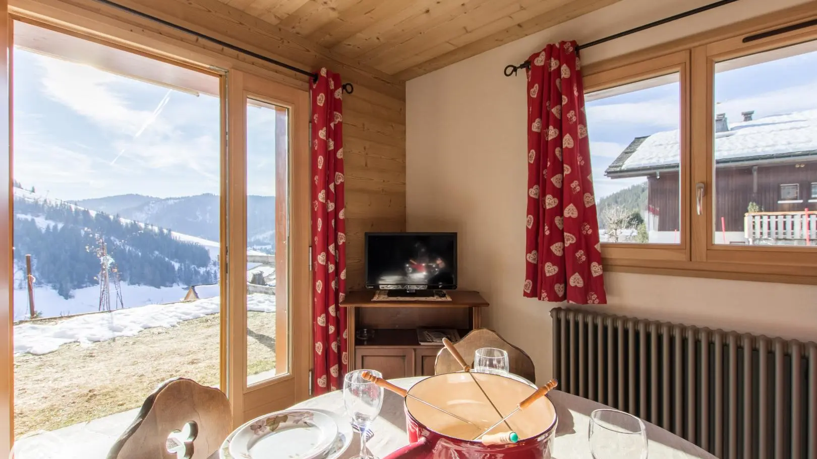 Gîte de 36m² aménagé de plain-pied au rez-de-chaussée d'un chalet comprenant un logement propriétaire à l'étage. Entrée indépendante. Secteur calme sur les hauteurs de La Clusaz