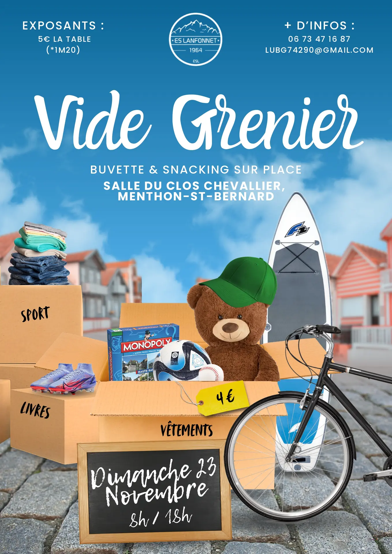 Une journée pour vendre, chiner, faire de bonnes affaires et passer un bon moment tous ensemble, au profit de l’ES Lanfonnet.