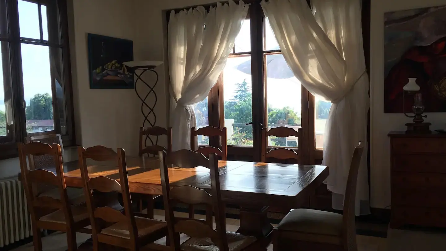 Les trois étages de la maison avec le parking et le grand jardin arboré et clôturé, côté lac, sont entièrement à disposition des voyageurs.