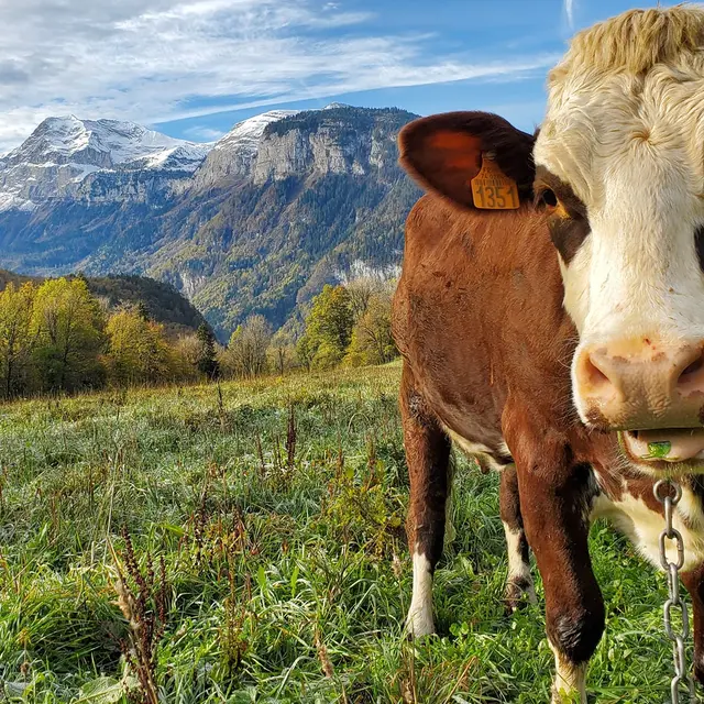 Troupeau de vaches laitières, génisses, cochons, poules et veaux... Petits et grands seront ravis de faire connaissance avec les animaux de la ferme de Ballancy (à 5 kilomètres des Carroz).